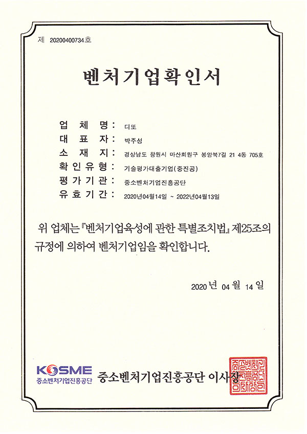 • 벤처기업인증서
