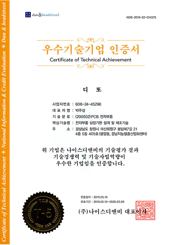 • 우수기술기업 인증서