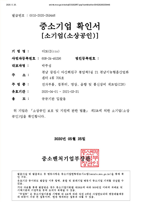 • 중소기업확인서
